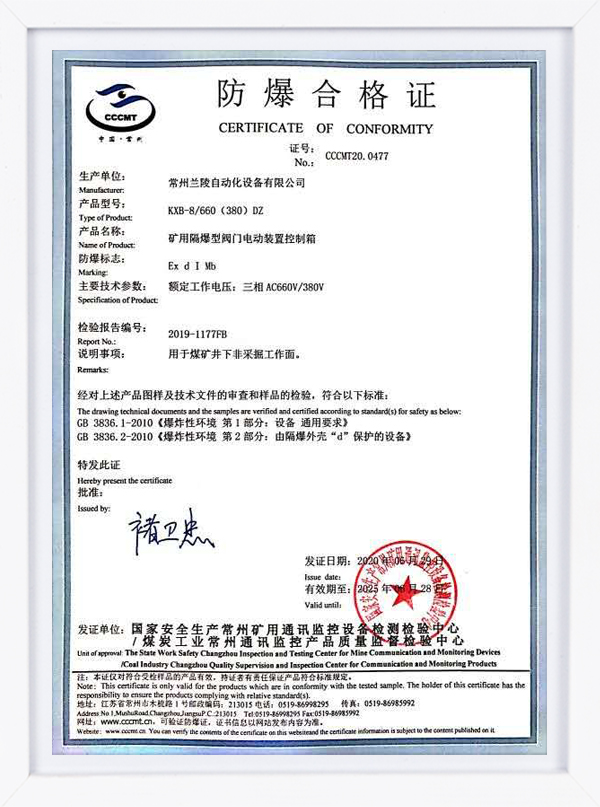 防爆證KXB-8/660(380)DZ
