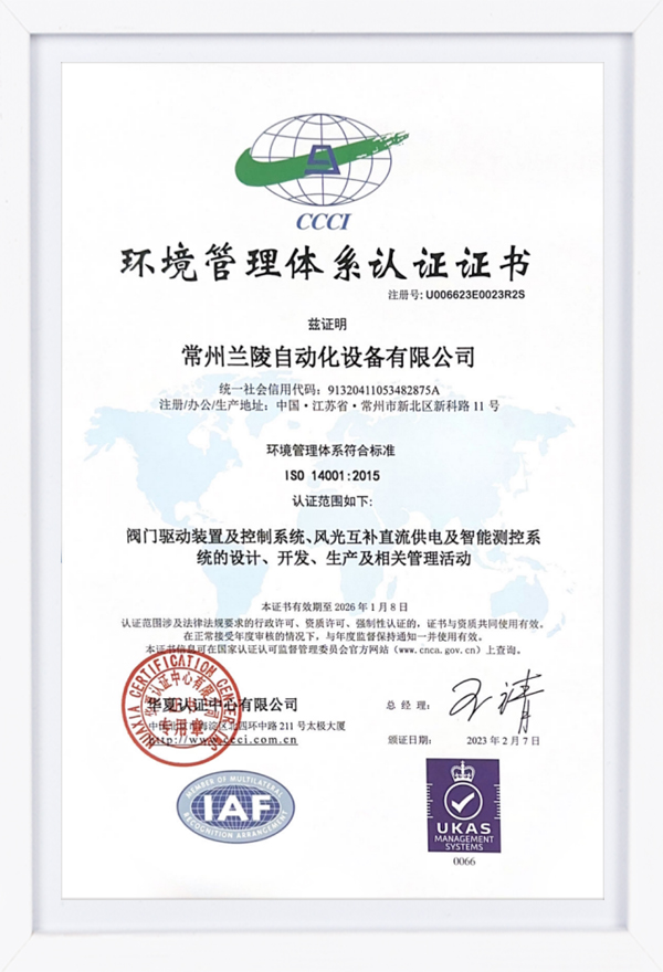 環境管理體系認證證書