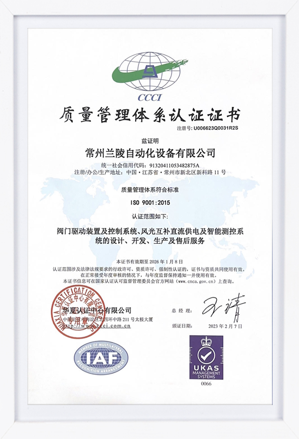 質量管理體系認證證書