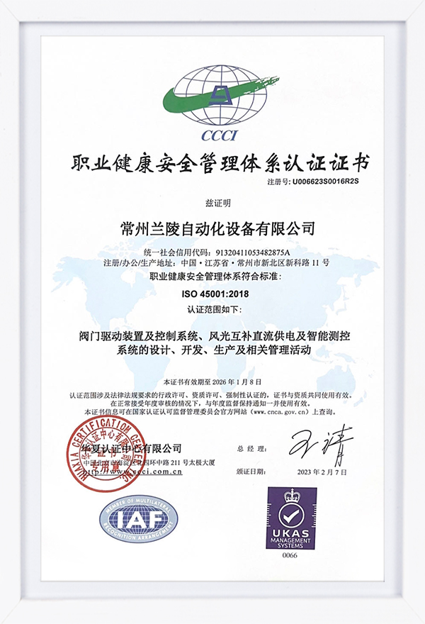 職業健康安全管理體系認證證書