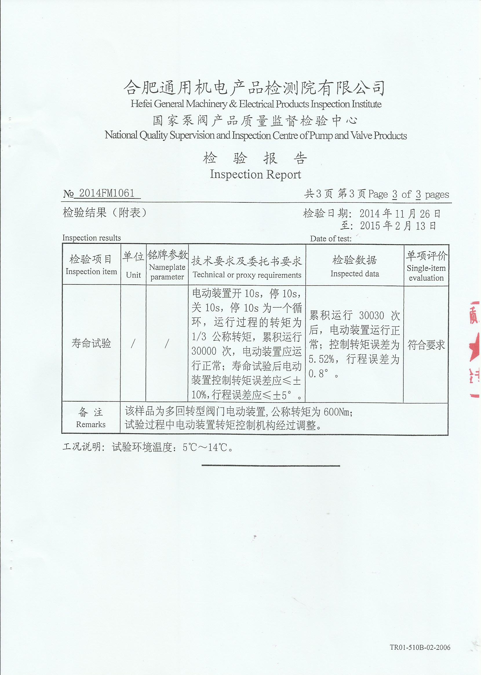 30000次ZYK60-24壽命試驗報告