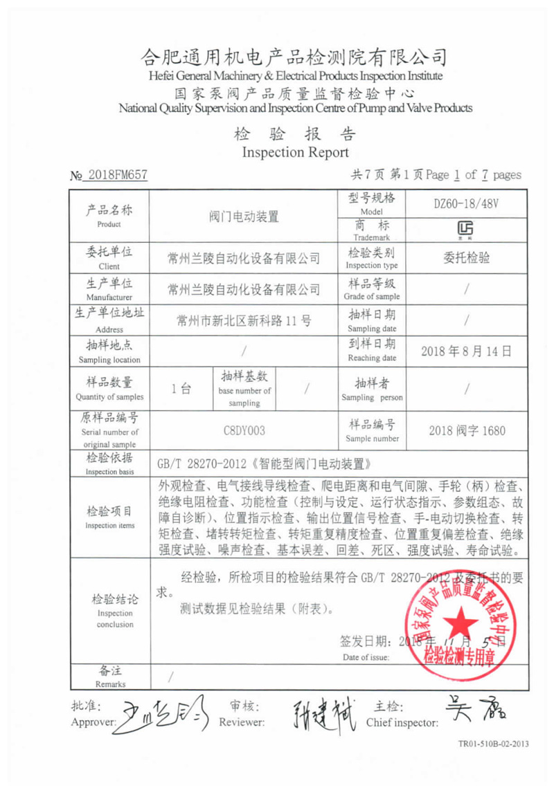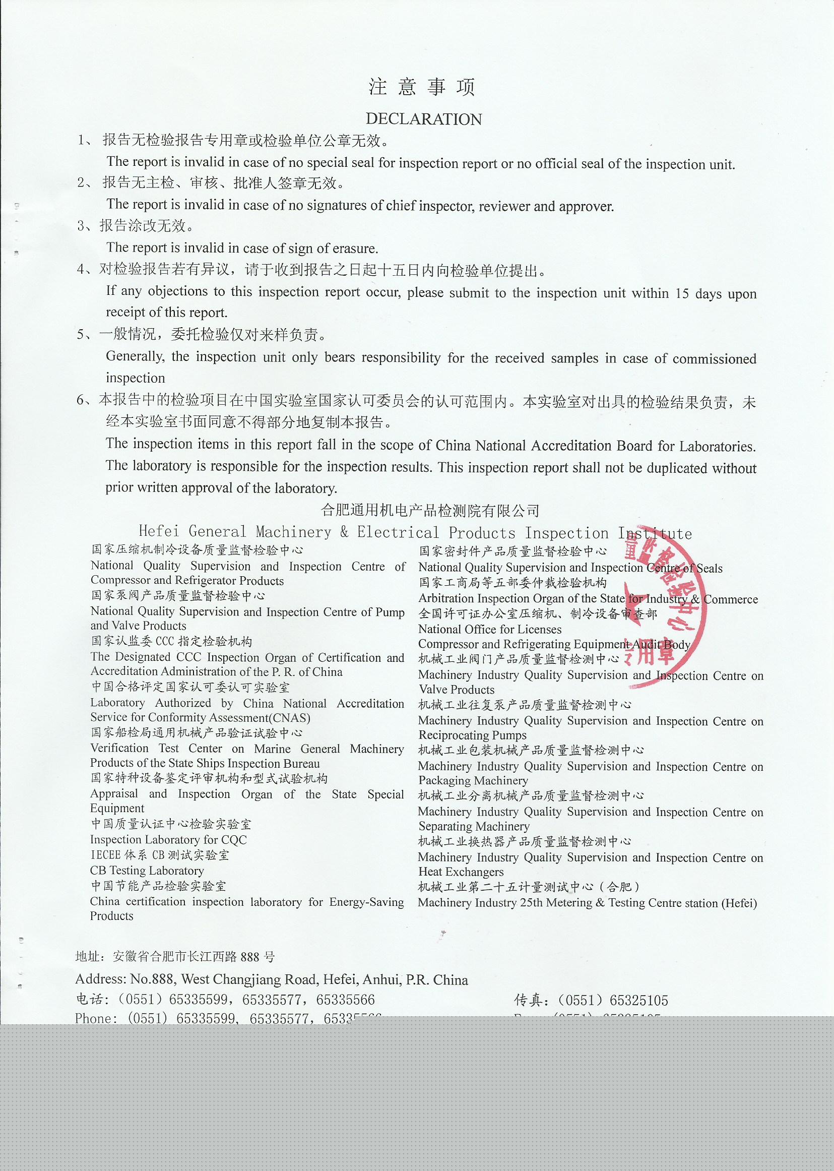 ZB QB系列認證證書附件