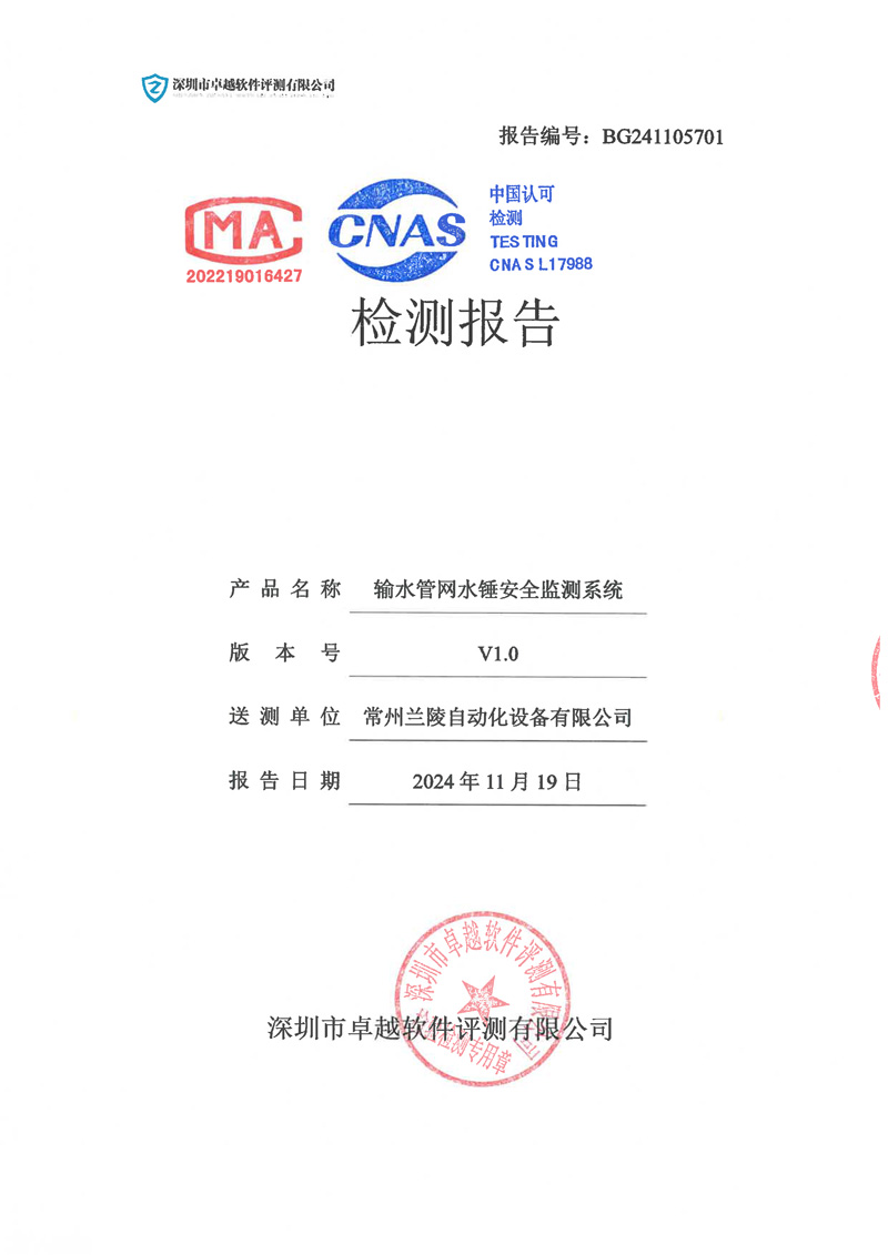 輸水管網水錘安全監測系統檢測報告